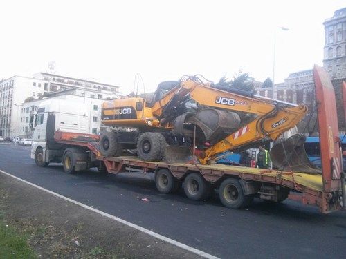 Gumi kerekes, fém- vagy gumiláncos kotrók szállítása. Akár 3,15 m magasságig 2,5 m szélesség felett is, valamint 24 t össztömegig tudjuk vállalni ezen típusú gépek szállítását.